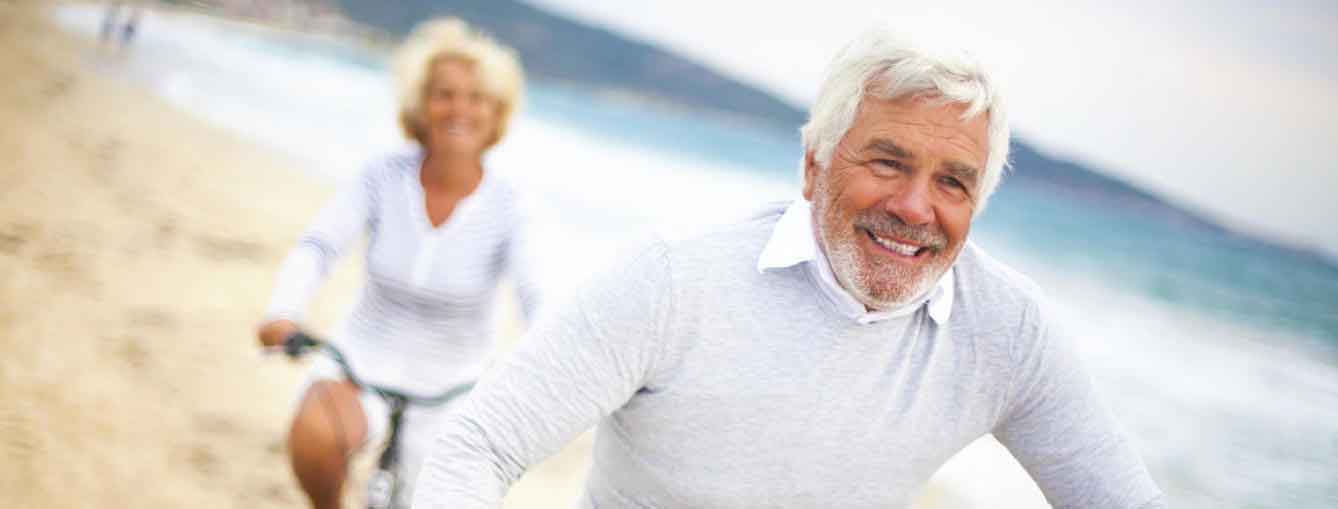Gente mayor en bici por la playa - sin cortar texto debajo