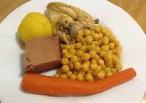- Servir la sopa con los garbanzos con la verdura, la carne y el pollo.