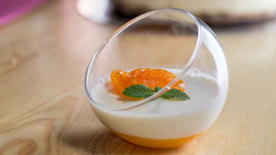 - Añadimos el yogur y batimos bien, y lo ponemos en vasitos. Decoramos con ralladura de naranja y virutas de chocolate 70% cacao.