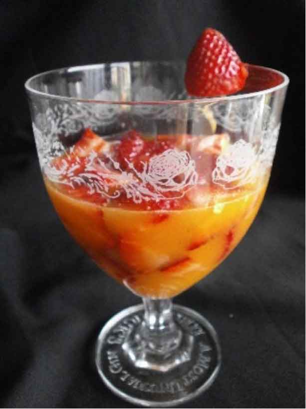 • Limpiar las fresas y partirlas en trozos, añadir el néctar de naranja.