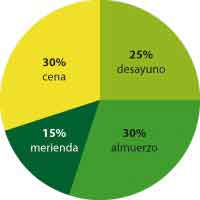Tanto por cien del total de los alimentos consumidos a diario, que se debería alcanzar en cada una de las cuatro principales comidas.