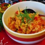 Espolvorear con el pimentón, revolver y añadir el caldo de verduras (o agua) y sazonar