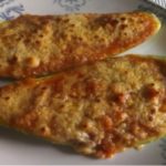 Rellenar los troncos de calabacín con una mezcla de bechamel y el relleno rehogado; colocar en una fuente y espolvorear con queso rallado.