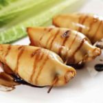 Al cuerpo de los calamares se le hace un pequeño corte en la punta para evitar que revienten al cocer y se salga el relleno.