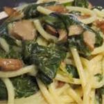 Mientras, cocer la pasta unos 7 minutos. Escurrir y mezclar con las espinacas y las setas.
