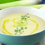 Se limpian y pelan los puerros, la cebolla y la patata. Se colocan en una cazuela y se rocían con aceite de oliva.